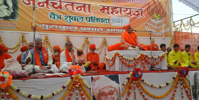 अपनी विश्व की प्राचीनतम संस्कृति सभ्यता के प्रति जनता में नई चेतना जागृत कर विदेशी दासता के भावों से लोगों को मुक्त करने के लिए चैत्र शुक्ल प्रतिपदा को नववर्ष मनाने हेतु यह विशाल बहुकुण्डीय जनचेतना महायज्ञ मेरठ के महाराणा प्रताप प्रांगण (जीमखाना मैदान) में प्रतिवर्ष सम्पन्न किया जाता है। जो कि स्वामी जी के ही ब्रह्मत्व में तथा गुरुकुल के ब्रह्मचारियों के ऋत्विक्त्व में होता है। अनेक भक्त भारतीय वेशभूषा में यज्ञ में उपस्थित होकर गौरवान्वित होते हैं।