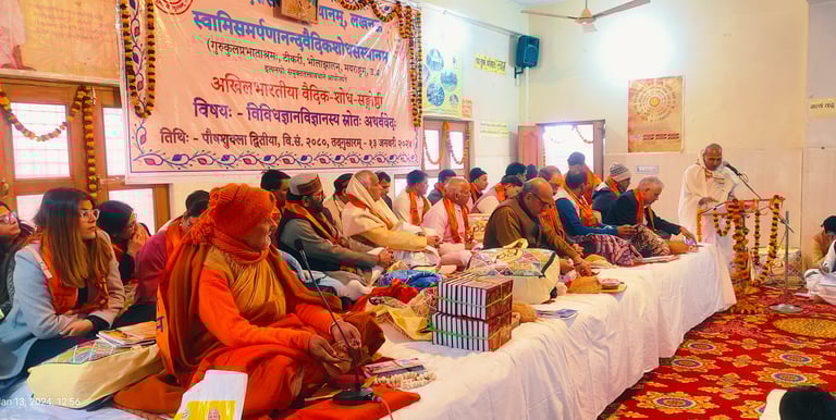 ऋग्वेद के मूर्धन्य विद्वान् स्वामी समर्पणानन्द जी के जन्मदिवस (श्रावण शुक्ल एकादशी) व निर्वाणदिवस (१३ जनवरी) के अवसर पर वर्ष में दो बार वेदविषय में अखिल भारतीय शोध संगोष्ठी का आयोजन किया जाता है। इसका उद्देश्य विविध विषयों में वेद व वेदांगों का मन्तव्य जन मानस तक पहुँचाना है। अतः अनेक वैदिक विद्वानों को तत्-तत् विषय पर शोध प्रस्तुत करने हेतु निमन्त्रित किया जाता है। ये सभी लेखसंग्रह मूल्यांकित त्रैमासिक शोधपत्रिका पावमानी में प्रकाशित किये जाते हैं। यह कार्य १९८६ से सतत चल रहा है। वर्तमान में यह कार्य डा० सोमदेव शतांशु, डा० वाचस्पति मिश्र तथा डा० वेदव्रत आदि गुरुकुल के स्नातकों के तत्त्वावधान में सतत अग्रसर है। इस शोध पत्रिका के माध्यम से वैदिक संहिताओं, ब्राह्मणों, आरण्यकों, उपनिषदों तथा वेदाङ्गों में निहित विविध गूढ़ रहस्यों को जन सामान्य तक पहुँचाकर गुरुकुल के संस्थापक पूज्य स्वामी समर्पणानन्द जी के लक्ष्य को पूरा किया जा रहा है।